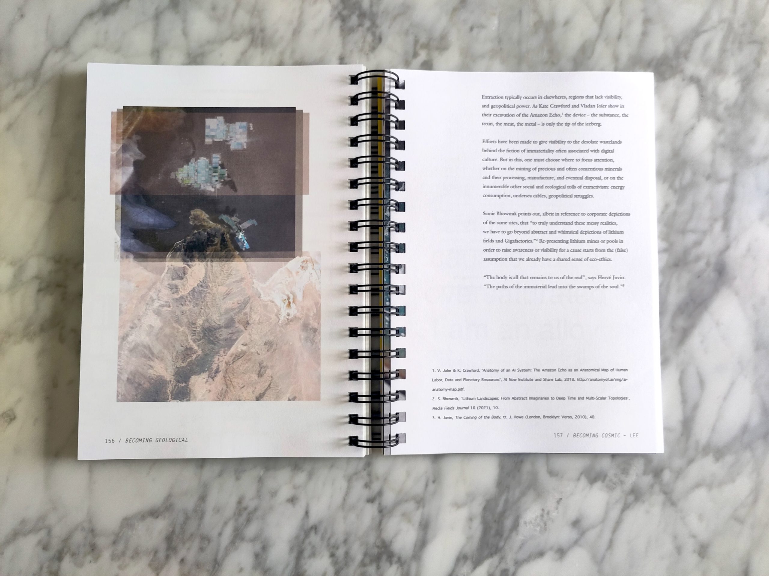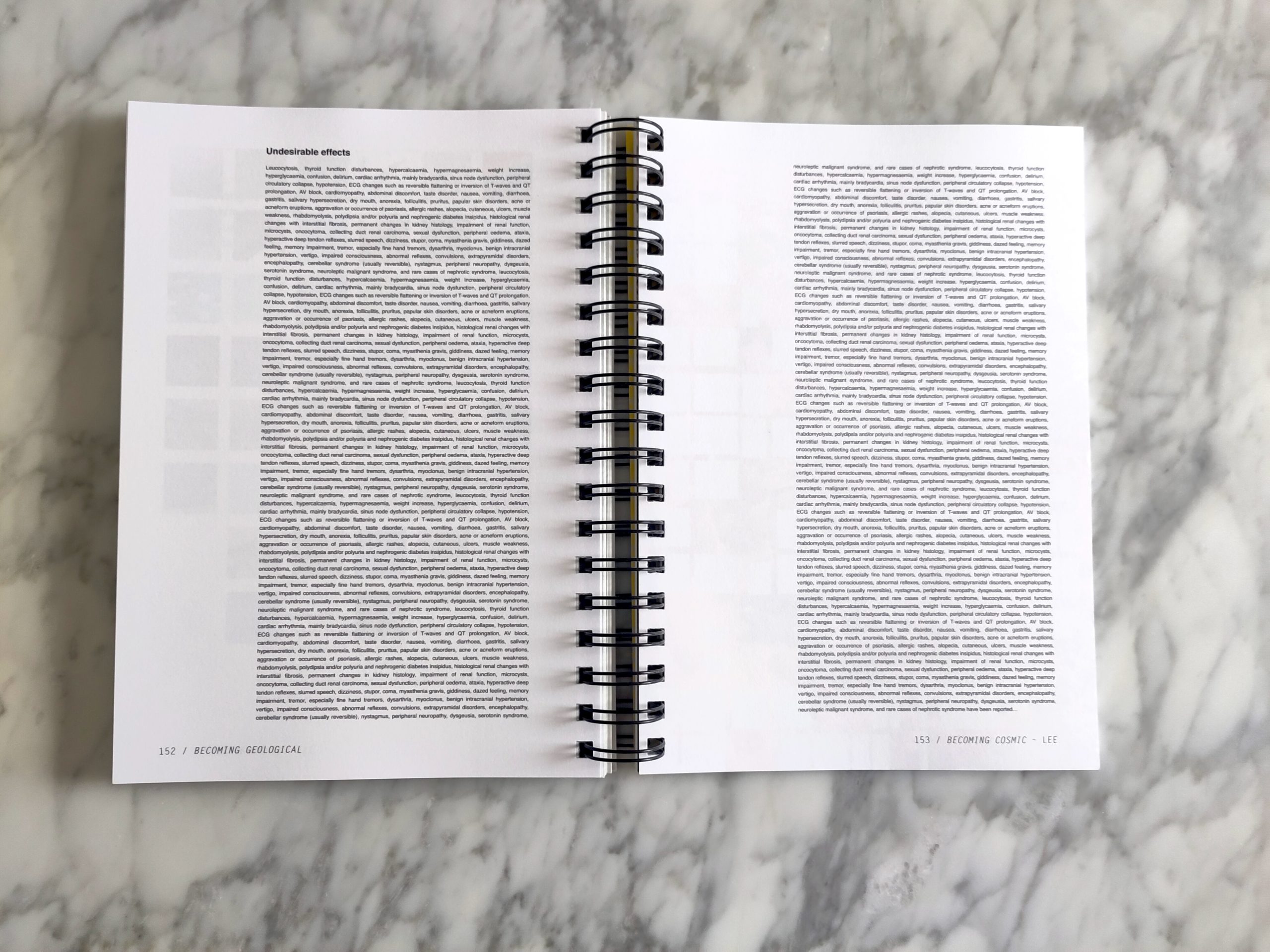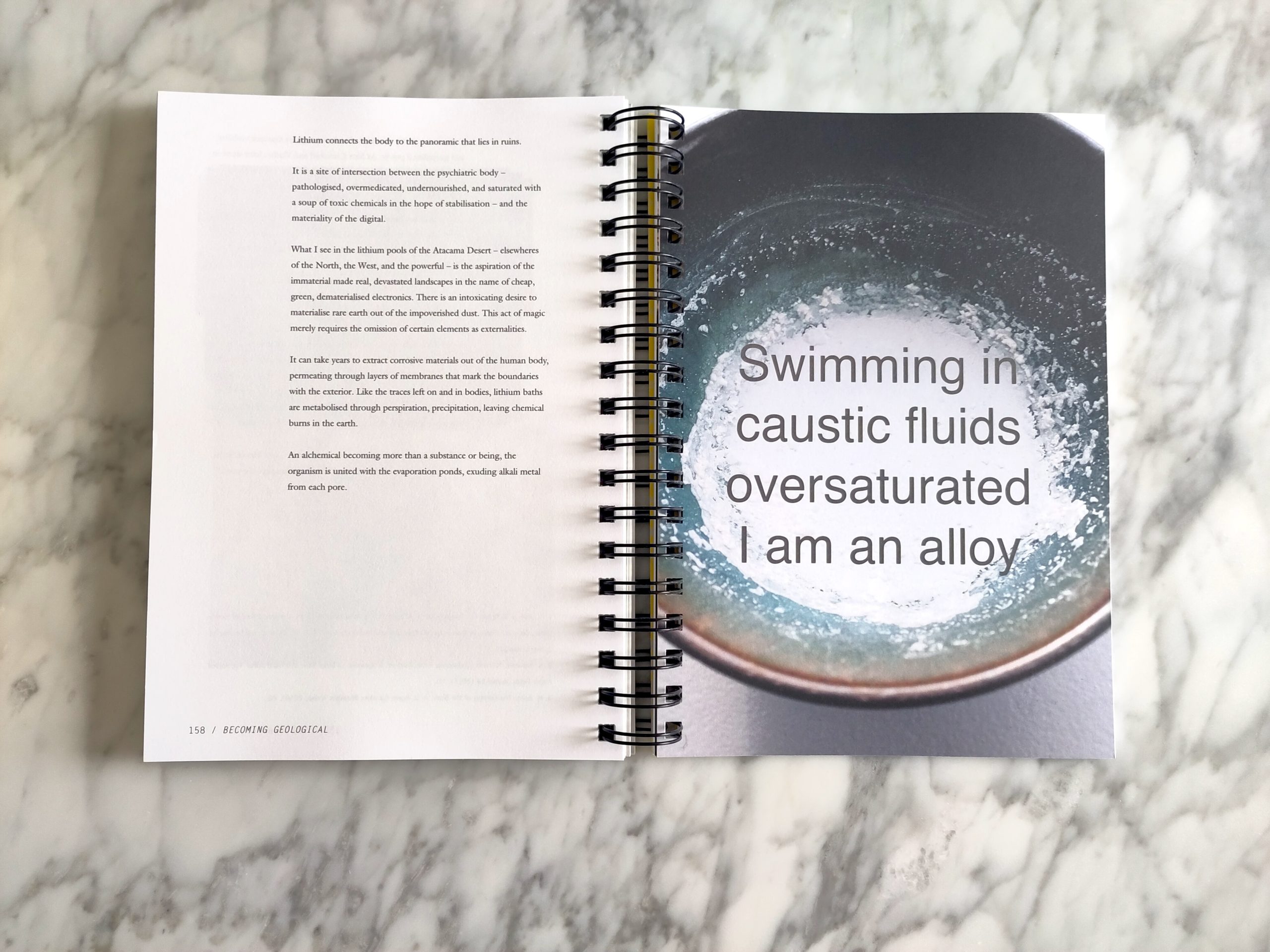 Becoming Geological functions as a manual for a new relation of the human with the earth and with the cosmos, invoking becoming metal, becoming earth and becoming cosmic as potential and multiple ways of being and as active philosophies of the earth; a guide for how to live and die within new planetary and cosmic techno-cycles. This divinatory guide has its roots and veins in the lustrous earths and waters of the Tiny Mining community, a mineral exploration collective committed to the open source exploitation of the interior of the human body for rare earth resources.
